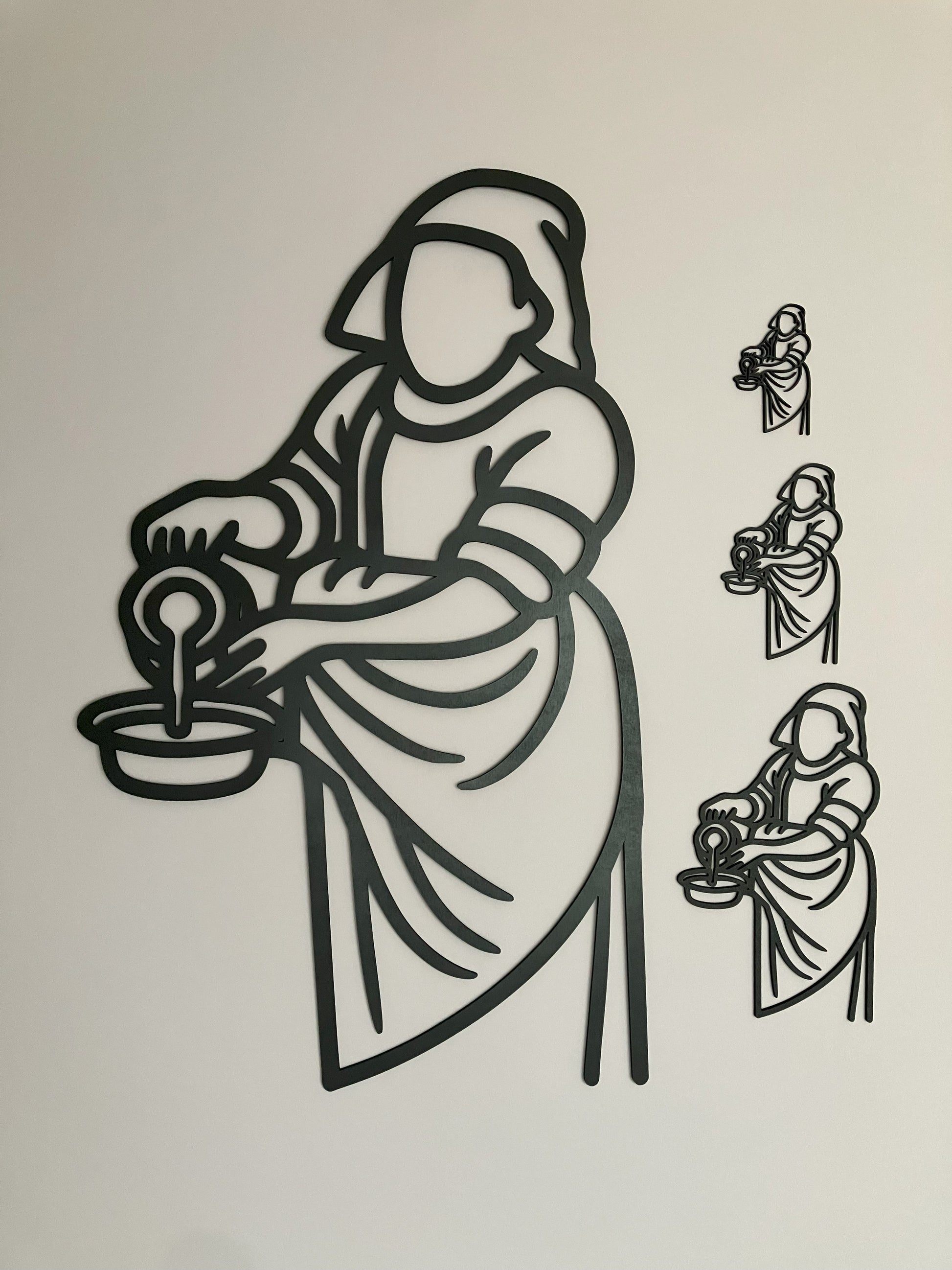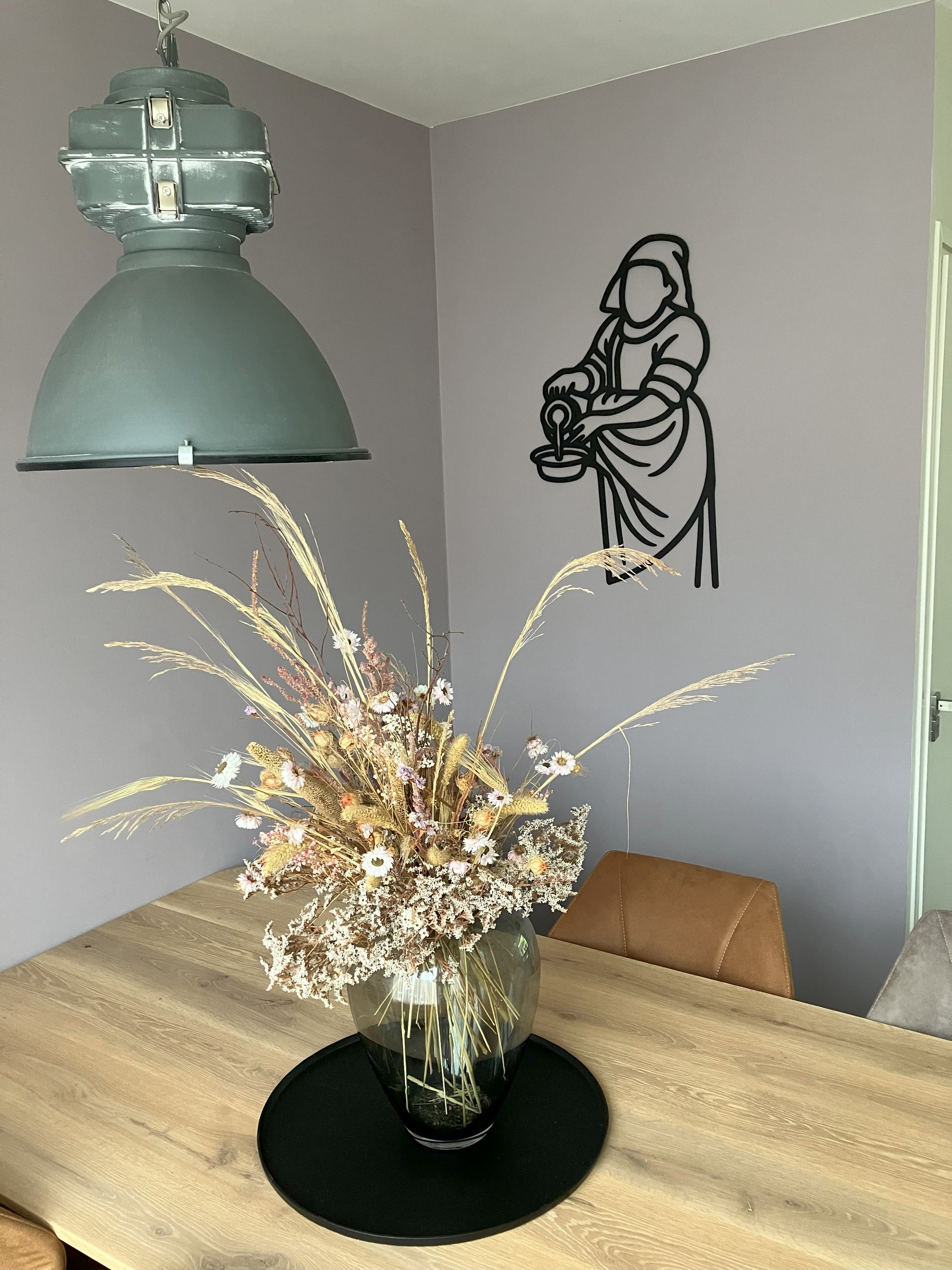 Zoek jij een echte eyecatcher voor aan de muur? Deze prachtige lijntekening van het bekende schilderij Melkmeisje van Johannes Vermeer staat werkelijk overal prachtig!